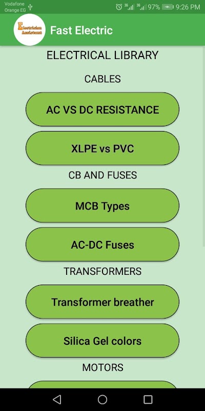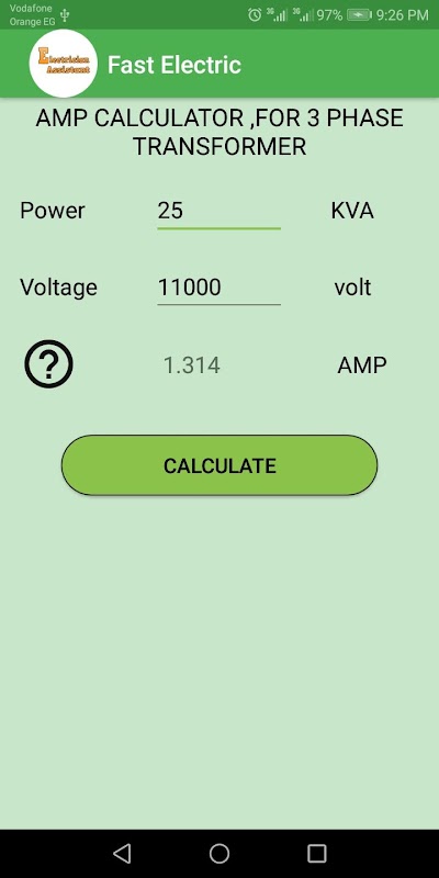This calculator is one of our electrical apps which are designed by an electrical engineer to help electricians and electrical engineers at installation and electrical calculations for any loads (motors , lighting , homes , electric service or companies)
