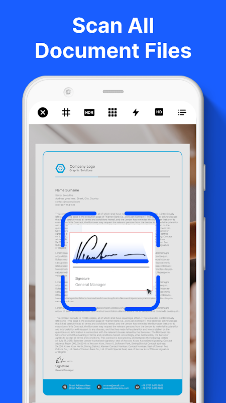 เครื่องสร้างลายเซ็นอิเล็กทรอนิกส์ช่วยให้คุณสามารถพิมพ์ลายเซ็นได้ เช่น พิมพ์ชื่อลายเซ็นที่คุณเลือก เลือกสไตล์ลายเซ็นของคุณจากรายการ และแก้ไขด้วยสี ตัวหนา ตัวเอียง ขีดเส้นใต้ เปลี่ยนพื้นหลัง และเพิ่มเครื่องหมายทับ เพื่อลงนาม บันทึกลายเซ็นทั้งหมดของคุณในแกลเลอรีแอปและใช้เป็นความยินยอมของคุณ Draw Signature ช่วยให้คุณปรับแต่งลายเซ็นที่คุณเลือกได้เพียงปลายนิ้วสัมผัสและปรับแต่งตามความต้องการของคุณ ลายเซ็นสแกนช่วยให้คุณสแกนลายเซ็นใดๆ ได้โดยตรงจากเอกสารได้อย่างง่ายดาย