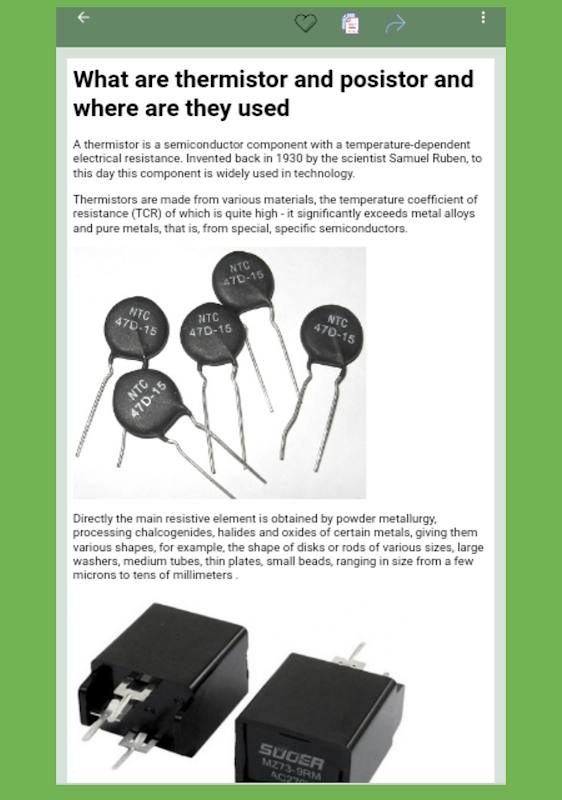 "คู่มืออิเล็กทรอนิกส์ตั้งแต่เริ่มต้น" เป็นแอปพลิเคชันที่มีประโยชน์สำหรับนักวิทยุสมัครเล่นระดับเริ่มต้นและวิศวกรอิเล็กทรอนิกส์ที่ต้องการฝึกฝนความรู้ในด้านอิเล็กทรอนิกส์ แอปพลิเคชันประกอบด้วยข้อมูลเกี่ยวกับชิ้นส่วนอิเล็กทรอนิกส์ประเภท ชื่อ และวัตถุประสงค์ต่างๆ ใน "คู่มืออิเล็กทรอนิกส์ตั้งแต่เริ่มต้น" คุณจะพบคำอธิบายของชิ้นส่วนอิเล็กทรอนิกส์ทั้งแบบพาสซีฟและแอคทีฟ