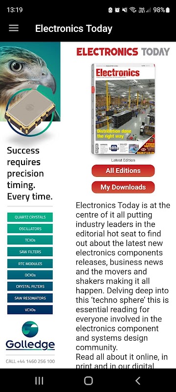 ยินดีต้อนรับสู่นิตยสารอิเล็กทรอนิกส์ App เทคโนโลยีส่วนประกอบอิเล็กทรอนิกส์ที่หลักมากของอุปกรณ์อิเล็กทรอนิกส์และชุมชนอุตสาหกรรมของโลกเป็นอย่างมากพึ่งพาเทคโนโลยีนี้ ก็คือการนวัตกรรมเหล่านี้และการพัฒนาที่ครอบคลุมความหลากหลายของภาคอิเล็กทรอนิกส์ที่มีลักษณะที่จะห้อมล้อมผ่านโฟกัสบรรณาธิการ อิเล็กทรอนิคส์พิมพ์ออนไลน์และตอนนี้ศูนย์กลางสื่อมือถือ culminates เป็นตัวเร่งปฏิกิริยาข่าวที่ชาญฉลาดสำหรับการส่งมอบทันสมัยในการเปิดตัวผลิตภัณฑ์ใหม่นวัตกรรมล่าสุดของเทคโนโลยีและเหตุการณ์ปัจจุบันส่วนใหญ่กวาดอุตสาหกรรมอิเล็กทรอนิกส์ของสหราชอาณาจักร แต่ยังต่างประเทศ และการอ่านที่จำเป็นสำหรับวิศวกรด้านการออกแบบทั้งหมด