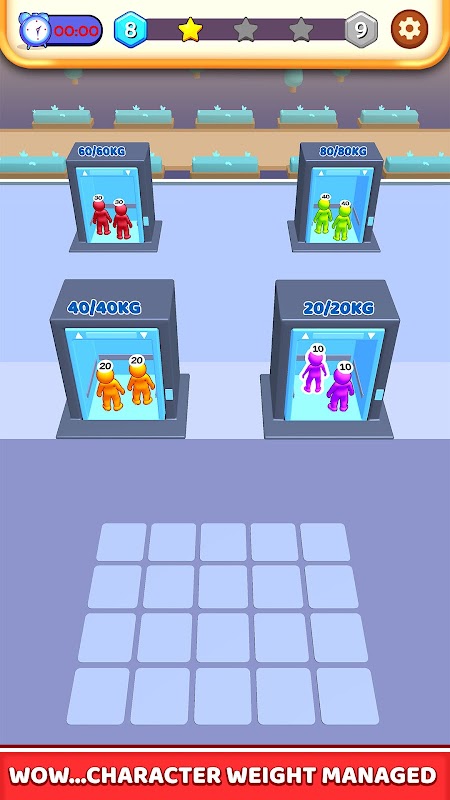 งานของคุณคือจัดเรียงบุคคลเพื่อยกของตามน้ำหนักของพวกเขา น้ำหนักควรเท่ากับที่คุณเห็นในลิฟต์ หากมีน้ำหนักมากหรือน้อย ลิฟต์จะไม่สามารถเคลื่อนที่ไปข้างหน้าได้ แต่ละด่านจะมีความท้าทายที่แตกต่างกันสำหรับคุณ คุณจะต้องใช้การวางแผนและกลยุทธ์มากมายในการไขปริศนา