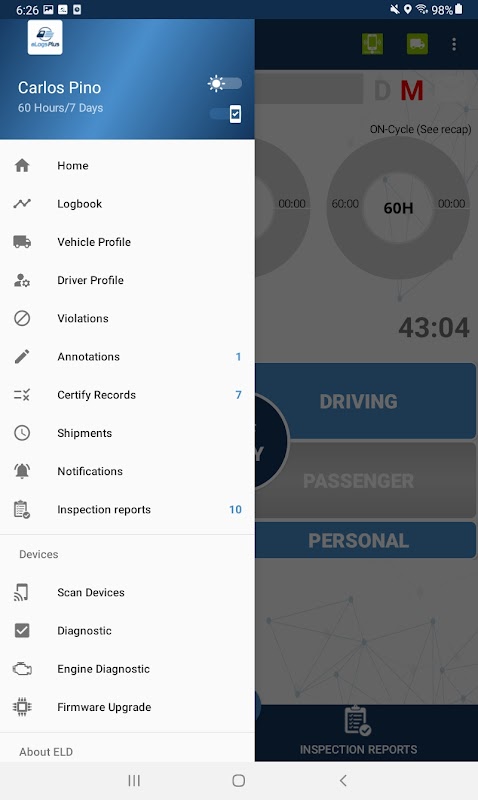แอปที่สอดคล้องกับ FMCSA เพื่อบันทึกสถานะหน้าที่ของผู้ขับขี่และปฏิบัติตามข้อบังคับต่อไปนี้:
