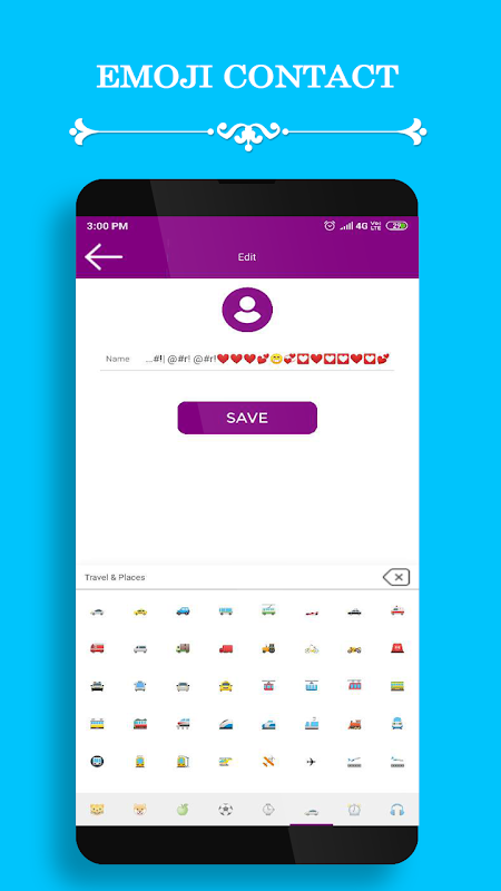 Create your Address book with lovely emojis!!! Change names with text, characters and emojis. Share your contacts to your loved ones with emoji in names. Also you can search your contacts by emoji symbols. All other apps like Whatsapp contacts, Facebook contacts, Messenger contact names will be changed automatically. Change Name with emoji, Emoji Contact Maker-app lets you quickly locate your friends through Emoji Photo.