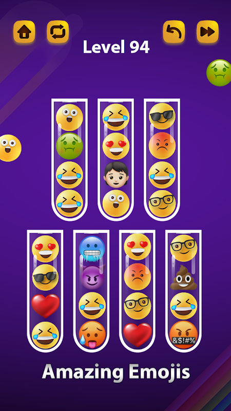 เกมไขปริศนาอีโมจิเรียงสีนี้เล่นง่าย เกมไขปริศนาเรียงอีโมจิที่เรียบง่ายและตรงไปตรงมาพร้อมความลึกที่ซ่อนอยู่สำหรับผู้เล่นที่มีทักษะ แตะเพื่อหยิบอีโมจิสีจากขวดหนึ่งและวางลงในขวดที่ตรงกันอีกขวดหนึ่ง แล้วปลดปล่อยความเชี่ยวชาญของคุณในเกมไขปริศนาเรียงอีโมจิที่น่าติดตามนี้ ฝึกสมองและเพิ่มความคิดเชิงตรรกะด้วย Emoji Sort Puzzle ประสบการณ์การเล่นเกมเรียง Emoji สี