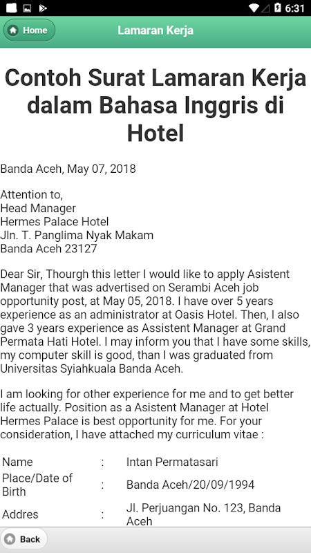 ข้อมูล จดหมายสมัครงาน (CV) เป็นสิ่งที APK