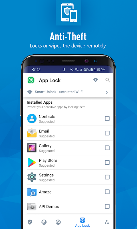 • ป้องกันการโจรกรรม — ควบคุมอุปกรณ์ของคุณจากระยะไกลในกรณีที่สูญหายหรือถูกขโมย ล็อค ลบข้อมูล ค้นหาตำแหน่งบนแผนที่ หรือแสดงข้อความ รวมภาพหน้าจอผู้บุกรุก