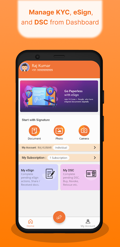 ผู้ใช้แอป eMudhra ที่สมัครรับข้อมูลจาก esign.emudhra.com สามารถดาวน์โหลดแอปนี้เพื่อลงนามในเอกสาร PDF ได้อย่างง่ายดาย ผู้ใช้ยังสามารถถ่ายภาพจากกล้องและดำเนินการ eSign ได้อีกด้วย
