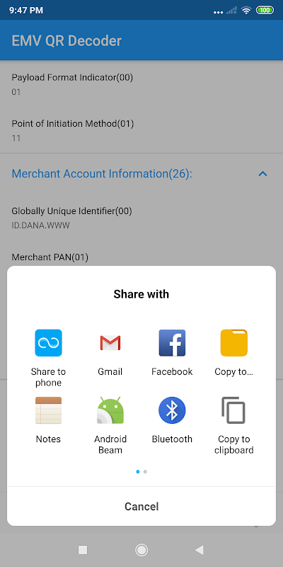 แอพนี้จะอ่าน EMV QR โหลดล่วงหน้าและถอดรหัสข้อความมันเข้ากันได้กับ HKQR, SGQR, QRIS (อินโดนีเซีย) และอื่น ๆ คุณสามารถใช้สิ่งนี้สำหรับการแก้ไขปัญหารหัส QR การแก้จุดบกพร่องและอื่น ๆ