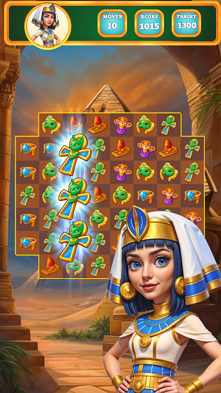 ยินดีต้อนรับสู่ "Egyptian Match Puzzle Quest" เกมจับคู่ 3 ตัวสุดยอดเยี่ยม หากคุณชอบเกมปริศนา คุณมาถูกที่แล้ว เกมนี้ให้ความบันเทิงแก่คุณได้นานหลายชั่วโมง