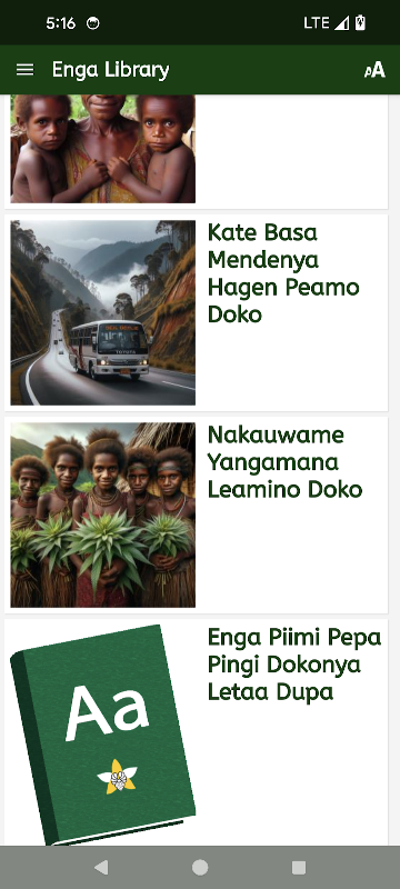 ภาษา Enga มีผู้พูดมากกว่า 230,000 คนที่อาศัยอยู่ในที่ราบสูงของปาปัวนิวกินี ห้องสมุดเอนกะนี้มีหนังสือ 35 เล่ม