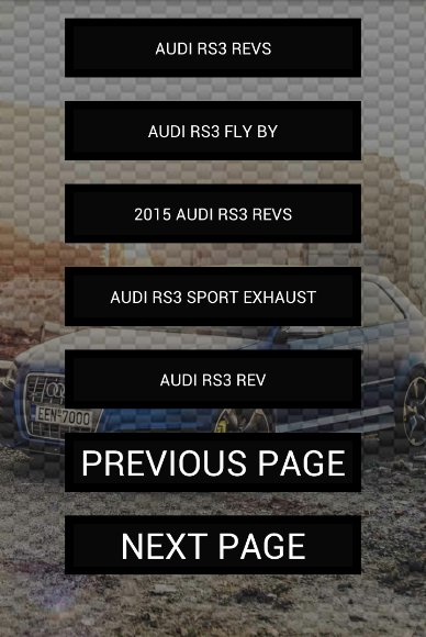 App every car enthusiast needs - enjoy the epic engine exhaust sounds of RS3 S3 A3. Brutally loud and epic accelerations, revs and fly by's! Fix your daily car craving with this amazing app!