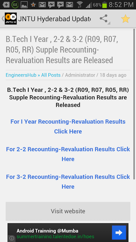 - Updates of JNTUH, JNTUK, JNTUA & Osmania