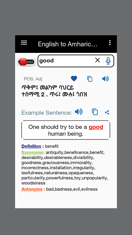 พจนานุกรมภาษาอังกฤษเป็นภาษาอัมฮาริกและอัมฮาริกเป็นพจนานุกรมภาษาอังกฤษแบบออฟไลน์