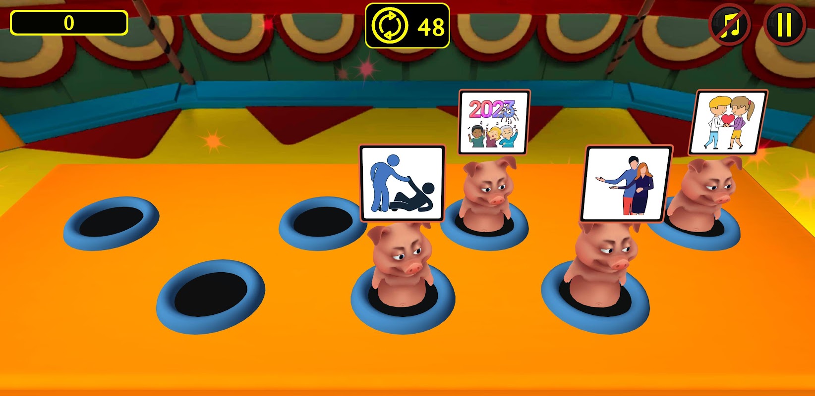เมื่อคุณได้เรียนรู้บัตรคำศัพท์เพียงพอแล้ว ให้ทดสอบทักษะเหล่านั้นด้วยการเล่นเกมคาร์นิวัลและเกมสไตล์อาร์เคด จากนั้นคุณสามารถเล่น 3 โหมดเกมแยกกัน: Whack a Pig, Archery และ Slingshot