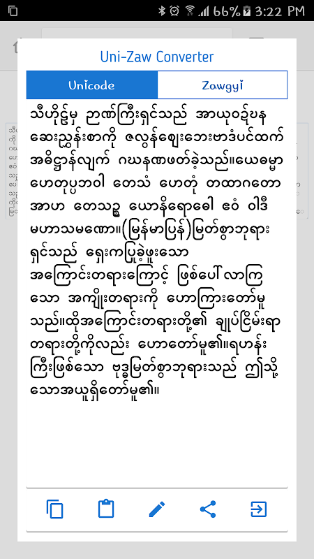 - แปลงตัวอักษร (Unicode จะ Zawgyi หรือกลับกัน)
