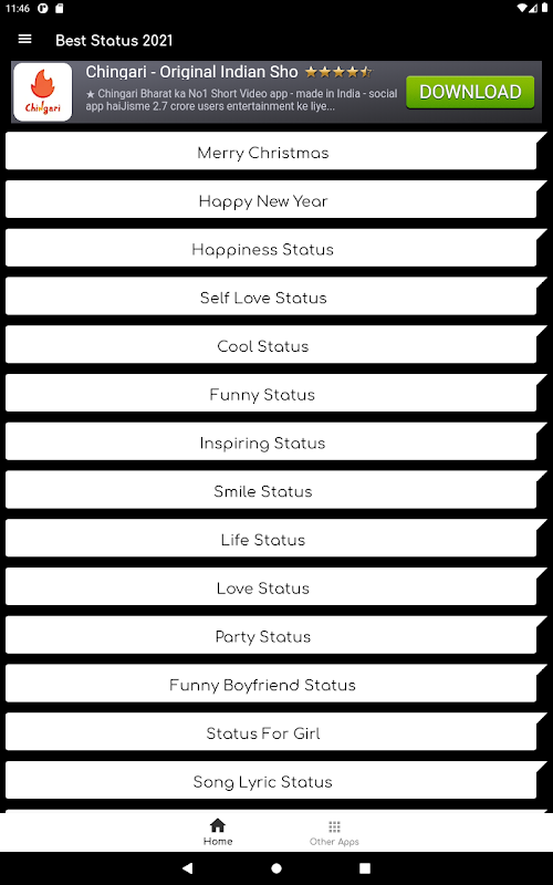 แอพนี้นำเสนอคอลเล็กชั่นสถานะภาษาอังกฤษที่ดีที่สุดแก่คุณ แสดงความรักของคุณด้วยสถานะนี้ คอลเลกชันของสถานะและคำพูดที่ดีที่สุดในภาษาอังกฤษสามารถใช้เป็นสถานะ WhatsApp, สถานะ Facebook, คำอธิบายภาพ Instagram หรือโซเชียลมีเดียอื่น ๆ การตั้งค่าสถานะที่ดีจะเพิ่มไลค์บนโพสต์บนวอลล์ของคุณ หากคุณกำลังมองหาคอลเลกชันสถานะที่ดี บ้า เจ๋ง ตลก หรือน่าทึ่ง การค้นหาของคุณจะสิ้นสุดในแอปสถานะและคำพูดนี้