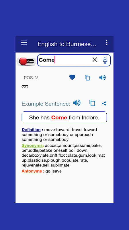 พจนานุกรมภาษาอังกฤษเป็นภาษาพม่า (เมียนมาร์) และพจนานุกรมภาษาพม่าเป็นภาษาอังกฤษแบบออฟไลน์ ส่วนต่อประสานและการออกแบบที่ใช้งานง่าย