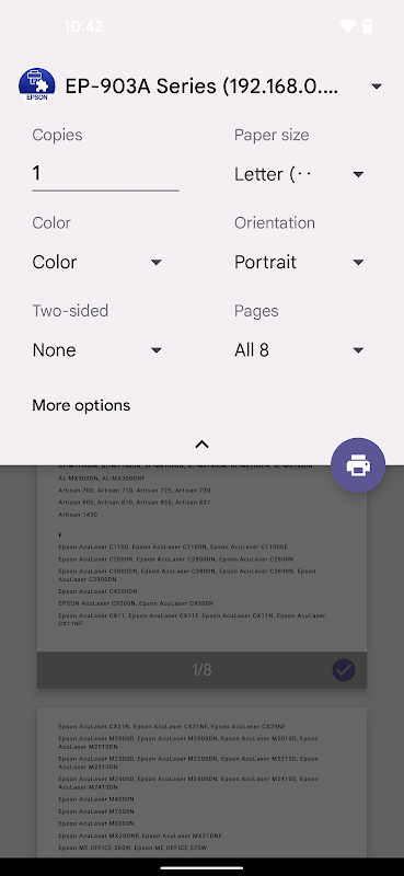 Epson Print Enabler ให้คุณพิมพ์ด้วย Android เวอร์ชัน 8 หรือใหม่กว่า