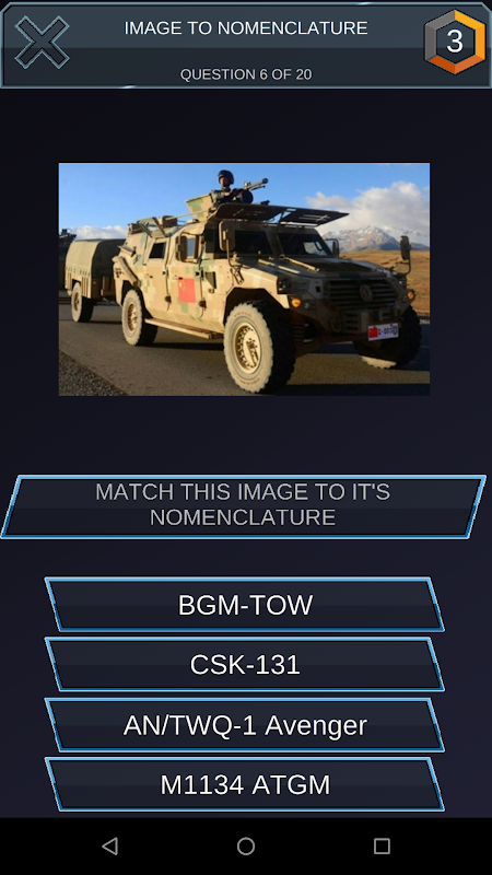 แอพจดจำอุปกรณ์ที่ออกแบบมาเพื่อทดสอบความรู้เกี่ยวกับอุปกรณ์ทางทหาร