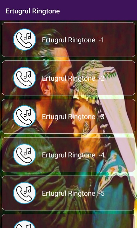แอพ Ertugrul Gazi Ringtones ประกอบด้วยเสียงเรียกเข้าทั้งหมดซึ่งตั้งค่าได้ง่าย