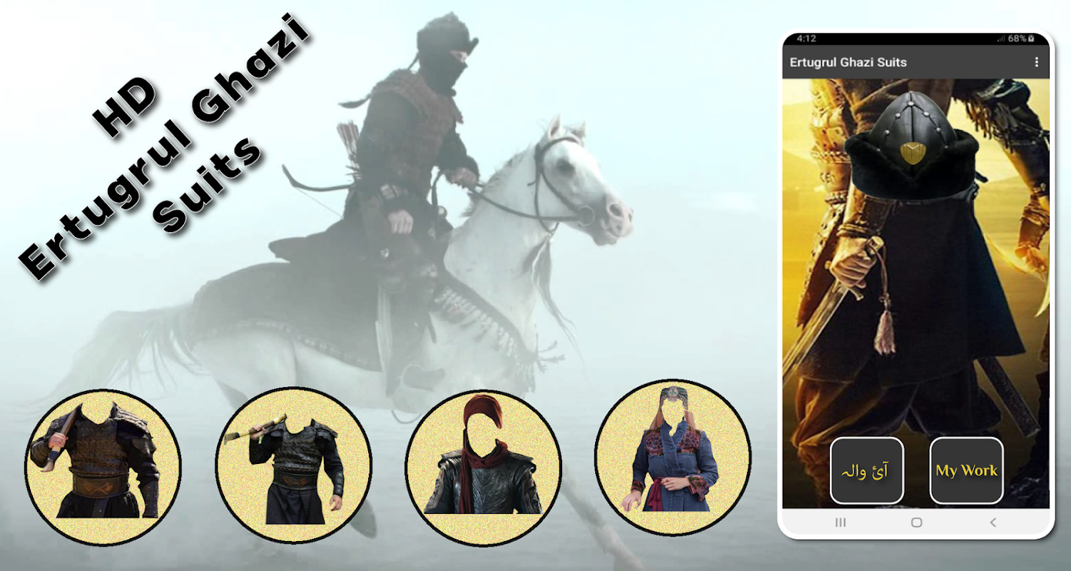 แอพ Ertugrul ghazi photo editor ประกอบด้วยชุดสูทและชุดของคนดังที่มีชื่อเสียงและการแสดงละครแห่ง Dirilis