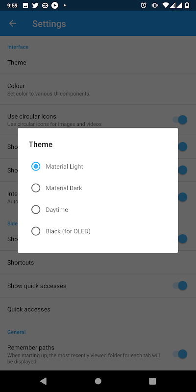 In the night light it's way too difficult to handle those bright harsh rays coming from the screen 😞 We got a solution for you 😃 There are many themes in this app such as Material dark, Material light, Day time and Black(OLED). You can use any of the themes according to user requirement, which in turn helps you to get a more user friendly interface.
