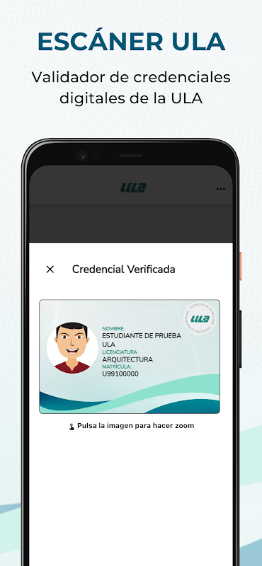 Verificar a un estudiante, docente o administrativo de la Universidad Latinoamericana nunca había sido tan sencillo, Escáner ULA es un validador digital el cual validará si el identificador proporcionado por el usuario es válido o no, de ser válido mostrará una copia de la credencial digital de la persona verificada, de caso contrario se mostrará un alerta avisando que el código proporcionado no tiene validez en la la institución, sin necesidad de tener algún contacto físico.