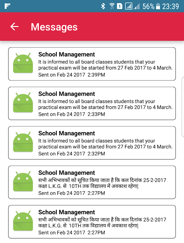 eSchool โซน Mobile App ร่วมกับนักพัฒนาโซนเทคโนโลยี (http://www.developerszone.in) เปิดตัวแอพพลิเค Android สำหรับโรงเรียน app นี้เป็น app ที่เป็นประโยชน์มากสำหรับผู้ปกครองนักเรียนครูและการจัดการที่จะได้รับหรืออัปโหลดข้อมูลเกี่ยวกับนักเรียน เมื่อติดตั้งแอปบนโทรศัพท์มือถือของนักเรียนผู้ปกครองครูหรือผู้บริหารเริ่มรับหรืออัปโหลดข้อมูลสำหรับนักศึกษาหรือพนักงานเข้าร่วมการบ้านผลหนังสือเวียนปฏิทินค่าธรรมเนียมค่าธรรมเนียมการทำธุรกรรมห้องสมุดพูดในชีวิตประจำวัน ฯลฯ ส่วนที่ดีที่สุด ของโรงเรียนคือมันช่วยให้โรงเรียนจากเกตเวย์ SMS มือถือที่มากที่สุดเท่าที่จะได้รับการสำลักหรือห้ามในกรณีฉุกเฉิน
