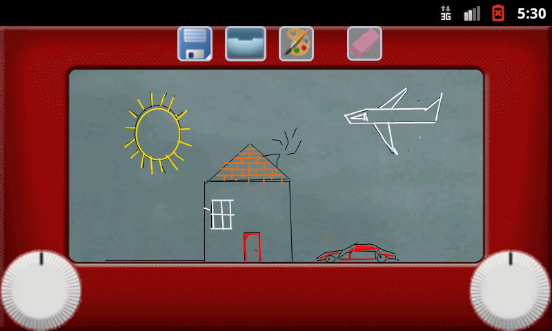 Turn the knobs to etch a sketch onto your screen, shake to erase, just like magic!