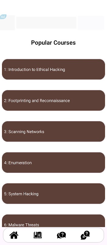 เริ่มต้นการเดินทางแห่งความรู้และการสร้างทักษะด้วยแอปของเรา ซึ่งออกแบบมาเพื่อเสริมศักยภาพให้กับผู้ที่ชื่นชอบและผู้เริ่มต้นในโดเมนการเรียนรู้การแฮ็กอย่างมีจริยธรรม