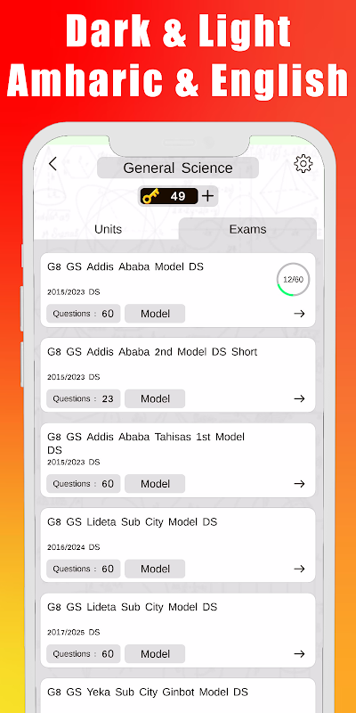 ด้วย Ethio Learn คุณจะรู้เสมอว่าคุณอยู่ตรงไหนและควรพัฒนาอย่างไร เหมาะสำหรับนักเรียนชาวเอธิโอเปียที่ต้องการทำข้อสอบ 8 วิชา แบบจำลอง แบบฝึกหัด และใบงานชั้นมัธยมศึกษาปีที่ 2 ให้ออกมาดีเยี่ยม