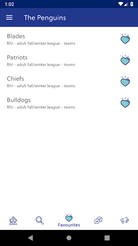 ทีมโปรด เมื่อดูทีมที่เข้าร่วมกิจกรรมเลือกไอคอนรูปหัวใจเพื่อชื่นชอบทีมจากนั้นดูตารางเวลาและคะแนนของพวกเขาในภายหลังจากหน้าจอหลัก