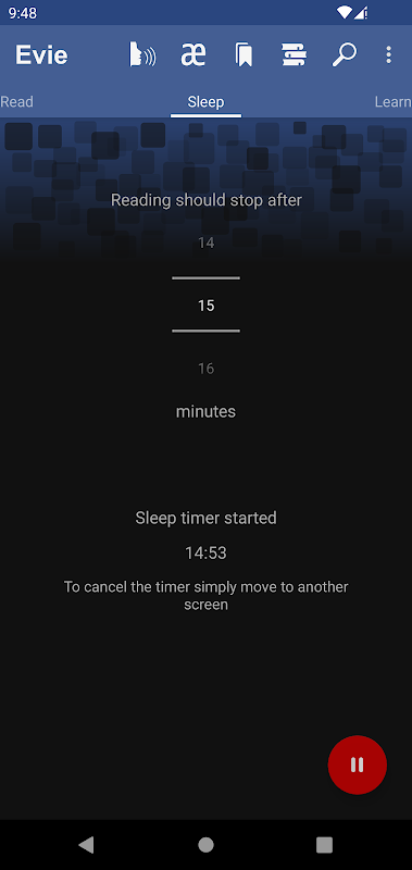 เปิดใช้งานด้วยการปัดเพียงครั้งเดียว จากนั้น Evie จะหยุดอ่านหลังจากเวลาที่เลือก