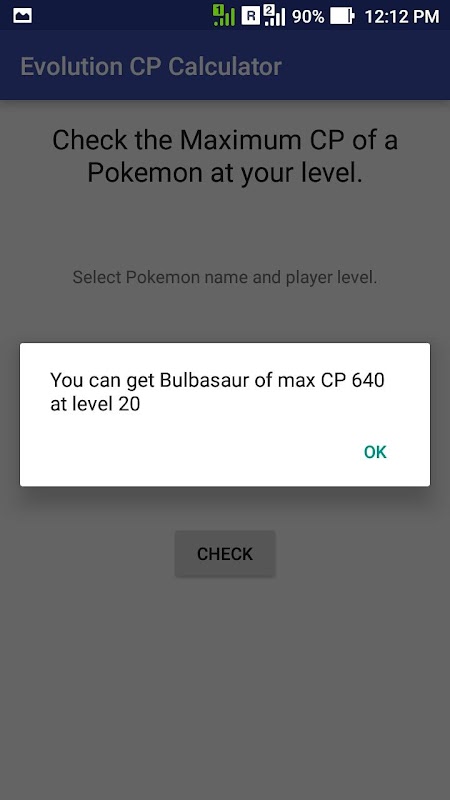 ->Calculate the maximum possible CP of a pokemon based on your player level (Pokemons have CP cap based on player level, you can find out these caps using this app).