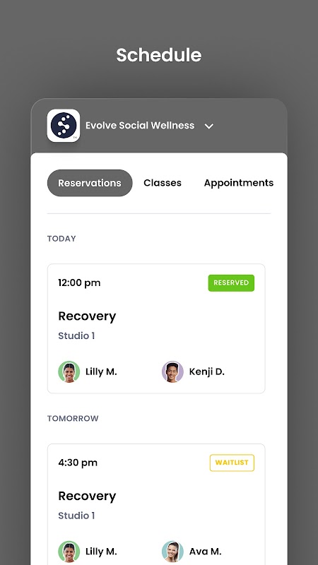 การจองคลาสเรียนและการจัดการบัญชีสำหรับสมาชิกของ Evolve Social Wellness