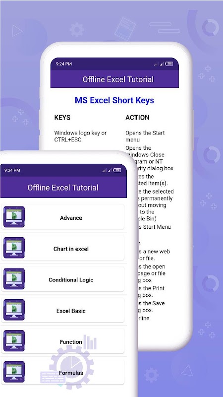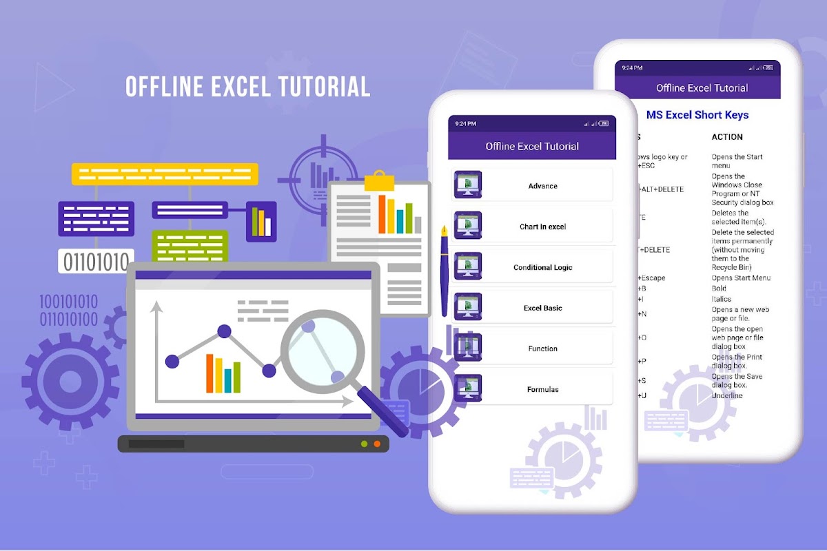 การจัดทำงบประมาณ การสร้างแผนภูมิ การวิเคราะห์ข้อมูล และอื่น ๆ อีกมากมายพร้อมให้คุณใช้งานเพียงปลายนิ้วสัมผัส สร้าง ดู แก้ไข และแชร์ไฟล์ แผนภูมิ และข้อมูลด้วยสเปรดชีต Excel และแอปจัดทำงบประมาณ ด้วยการผสานรวมการติดตามงบประมาณและค่าใช้จ่ายขณะเดินทาง โปรแกรมแก้ไขไฟล์ในตัวของ Excel ช่วยให้คุณจัดการการเงินของคุณได้ เราทำให้การประเมินและวิเคราะห์ข้อมูล อัปเดตเทมเพลต และทำสิ่งอื่นๆ เป็นเรื่องง่าย นี่คือแอปพลิเคชันการสอนที่สมบูรณ์แบบของ excel ทุกคนต้องทำงานนี้ให้เสร็จด้วยความเร็วและแป้นพิมพ์ลัดช่วยเพิ่มความเร็วในการทำงาน แอปพลิเคชั่นปุ่มลัด excel นี้เหมาะสำหรับทั้งผู้เริ่มต้นและขั้นสูงรวมถึงโรงเรียนและธุรกิจ นี่คือคุณสมบัติบางอย่างในแอพทางลัด excel ที่จะช่วยให้คุณเรียนรู้ ms excel แอปพลิเคชัน excel แบบออฟไลน์ที่สมบูรณ์ช่วยเพิ่มพูนความรู้ด้าน Excel ของคุณ ใช้แอปสูตรและฟังก์ชัน Excel นี้เพื่อเรียนรู้วิธีใช้ Excel ในแอปออฟไลน์หลักสูตร excel แบบเต็มนี้ใช้งานง่ายและเข้าใจง่าย