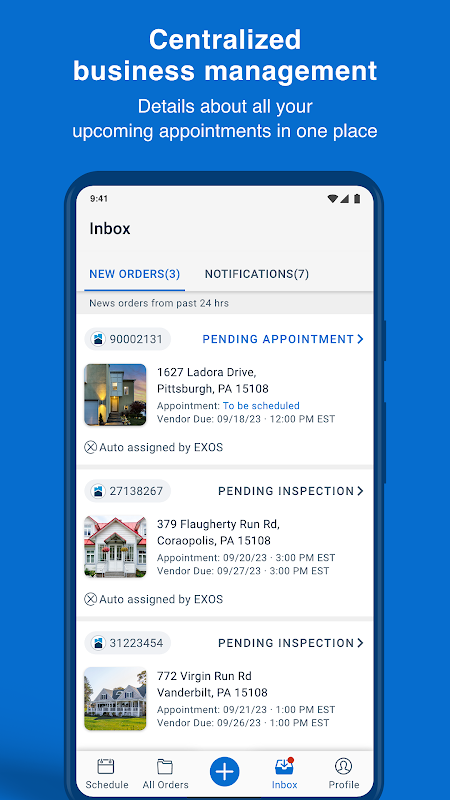 o เมื่อใช้ร่วมกับแอพ EXOS Scheduling ลูกค้าสามารถดูโปรไฟล์ผู้ประเมินราคาและข้อมูลการติดต่อก่อนที่จะมีการนัดหมายปรับปรุงการสื่อสารและเสนอความสบายใจ