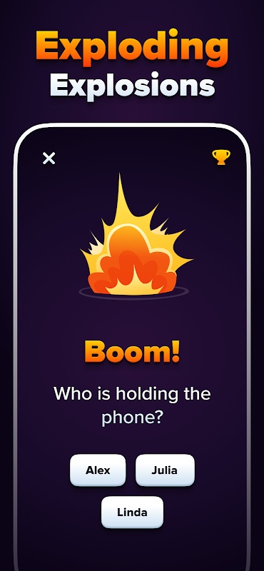 Players must quickly solve different word-based challenges and hand over the phone to another player before the chicken explodes. You lose a life if you hold the phone while the chicken blows up! It's a fun and easy game for groups.