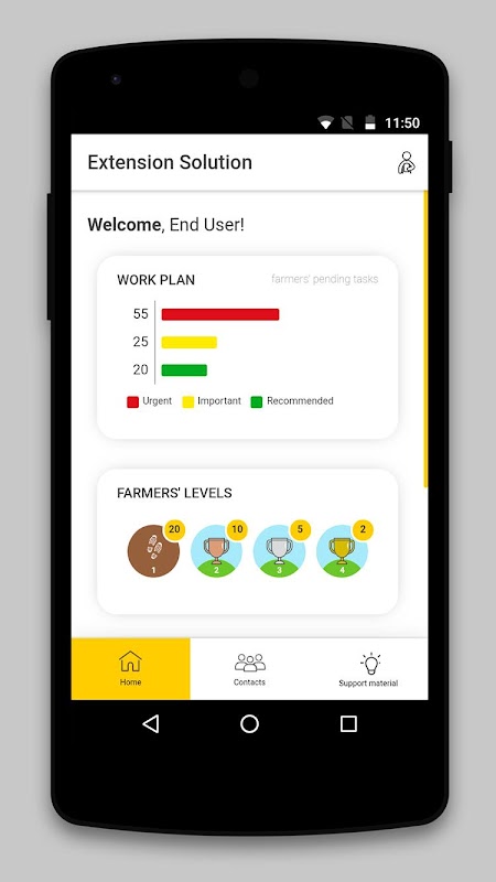 โซลูชันส่วนขยายให้ฟังก์ชันการทำงานแบบบูรณาการเพื่อให้เจ้าหน้าที่ภาคสนามสามารถให้ความสำคัญกับสิ่งที่ดีที่สุด: ช่วยเกษตรกรปรับปรุงระบบการผลิตของตน โซลูชันส่วนขยายสนับสนุนพนักงานส่วนขยายในกิจวัตรประจำวันของพวกเขาด้วย: