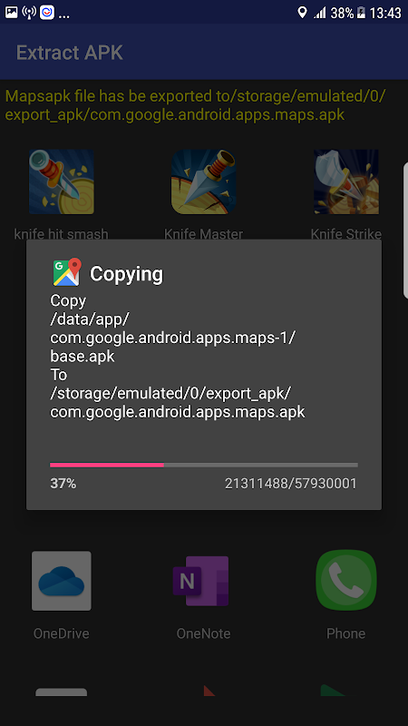 ★โดยค่าเริ่มต้น Apk จะถูกบันทึกไว้ใน / sdcard / export_apk /
