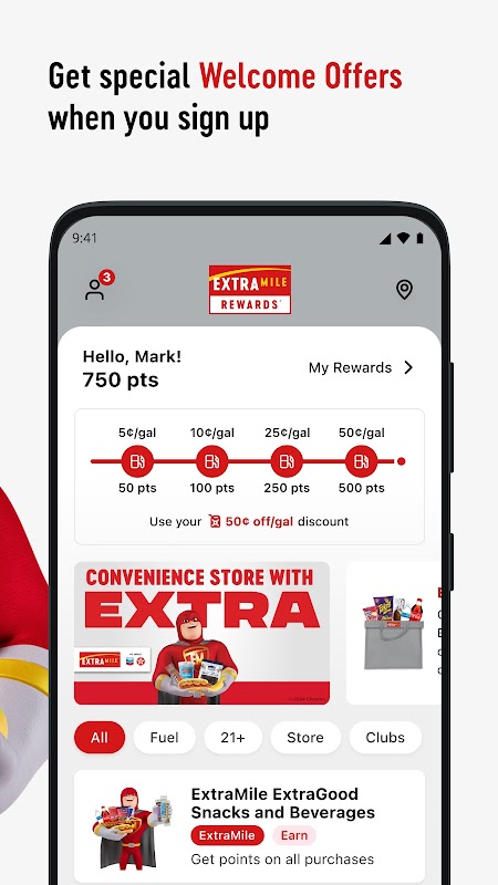 แอป ExtraMile, Chevron และ Texaco มีคุณสมบัติและฟังก์ชันเหมือนกัน โดยสามารถเข้าถึงคะแนนและยอดคะแนนสะสมเดียวกันได้ รับข้อเสนอพิเศษ ติดตามการปั๊มบัตร Club Program สะสมคะแนนเพื่อแลกรับคะแนนสะสมเมื่อเติมน้ำมันกับ Chevron และ Texaco และเพลิดเพลินไปกับการชำระเงินผ่านมือถือ นอกจากนี้ ยังรับข้อเสนอพิเศษต้อนรับเพิ่มเติมอีกด้วย!