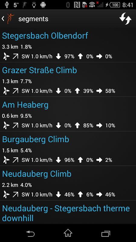- ข้อมูลลม (จากสภาพอากาศปัจจุบัน) สำหรับเซ็กเมนต์ Strava