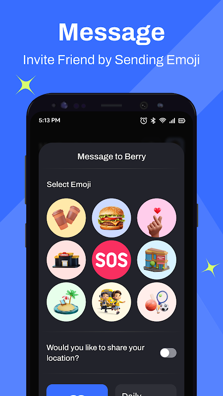 • อินเทอร์เฟซที่ใช้งานง่าย: เลือกผู้ติดต่อได้สูงสุด 10 รายบนหน้าจอหลักและส่งคำเชิญ (เช่น หยิบกาแฟหรือไปชายหาด) ด้วยการแตะเพียงครั้งเดียวเพื่อระบุเวลา