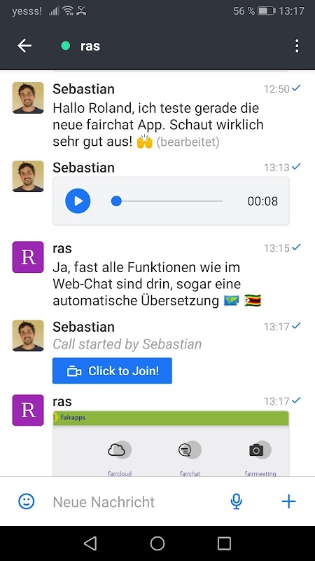 fairkom เป็นพันธมิตรอย่างเป็นทางการของ Rocket.Chat และเสนอการปรับแต่งหรือการผสานการทำงาน พูดคุยกับเรา หากคุณต้องการดูคุณสมบัติเพิ่มเติมหรือต้องการแอปของคุณเอง: [email protected]
