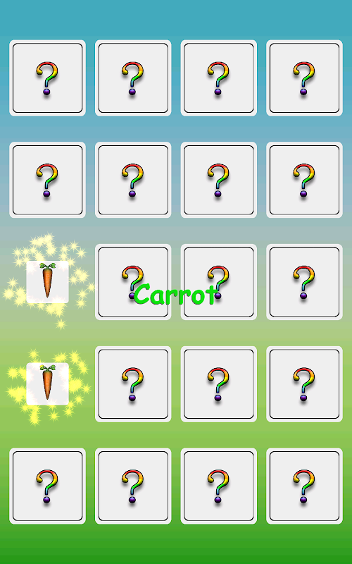 - เป้าหมายของเกมคือการเปิดมากกว่าคู่ของบัตรที่ตรงกัน มันเป็นเรื่องง่าย. แตะเพื่อพลิกไพ่สองใบ ตรงกับคู่และพวกเขาหายไป