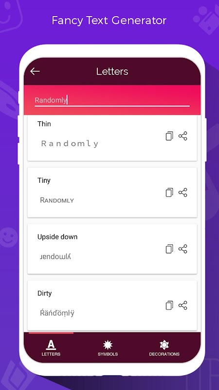 Fancy Text Styles Generator is an application designed to send personalized messages to your contacts directly in Whatsapp, you can also find amazing styles of letters to publish them on Facebook, Instagram, Twitter and many other applications.