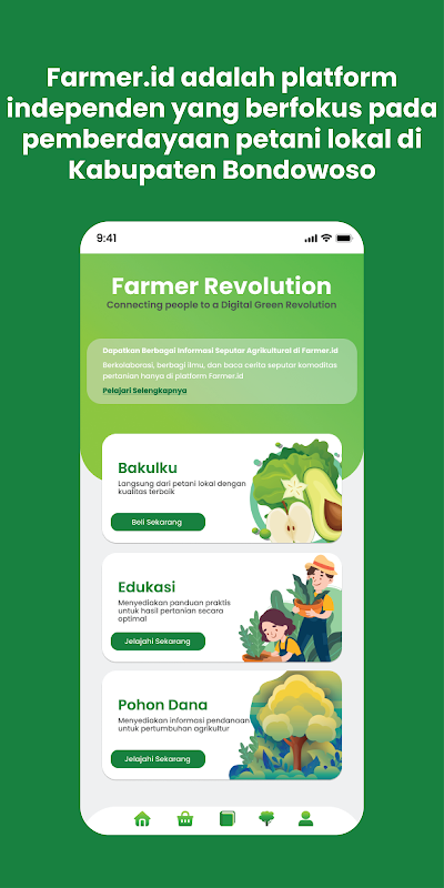 Farmer.ID เป็นแอปพลิเคชันที่ไม่ใช่ภาครัฐซึ่งมีอยู่เพื่อสนับสนุนการเสริมศักยภาพของเกษตรกรในท้องถิ่นใน Bondowoso ผ่านการทำเกษตรอินทรีย์แบบยั่งยืน แอปพลิเคชั่นนี้อำนวยความสะดวกในการโต้ตอบระหว่างเกษตรกรและผู้ใช้โดยตรง พร้อมทั้งเป็นศูนย์กลางการศึกษาและข้อมูลสำหรับทุกคนที่สนใจในโลกของการเกษตรที่เป็นมิตรต่อสิ่งแวดล้อม