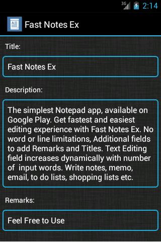 The simplest Notepad app for Android Smartphones and Tablets. Get fasted and easiest editing experience with Fast Notes Ex.