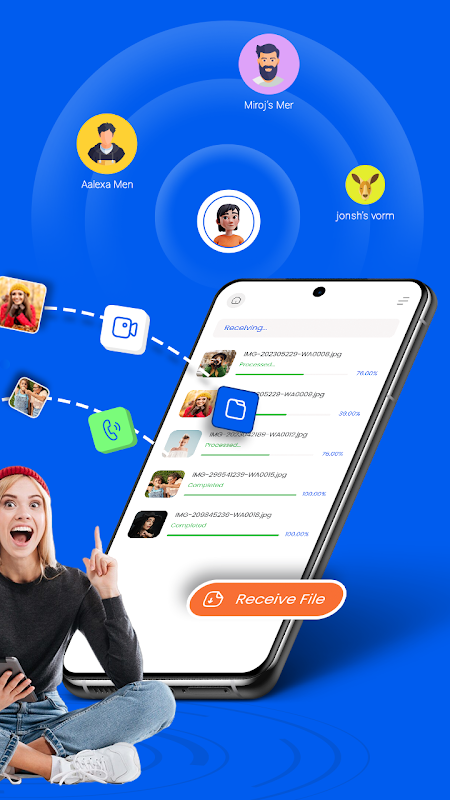 ตอนนี้แชร์วิดีโอ เพลง ภาพถ่าย แอพมือถือที่คุณชื่นชอบผ่านแอพถ่ายโอนไฟล์ ความเร็วการถ่ายโอนสูงสุดถึง 42MB/s ด้วยแอปแชร์นี้ คุณสามารถส่งและรับไฟล์ได้ใหญ่เท่าที่คุณต้องการ ภาพยนตร์ วิดีโอ ฯลฯ ด้วยความเร็วที่เร็วกว่าการถ่ายโอนผ่านบลูทูธถึง 200 เท่า คุณสามารถส่งแอพ ไฟล์ และสื่อได้จำนวนมากในคราวเดียว
