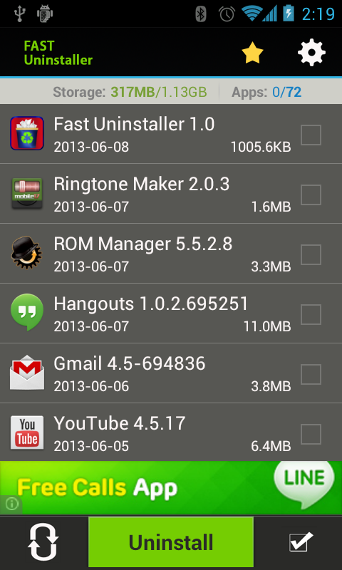 app นี้มีตัวเลือกให้เลือกหลายปพลิเคชันที่คุณต้องการถอนการติดตั้งและมีคุณไปเพียงแค่แตะที่ปุ่มถอนการติดตั้งและถอนการติดตั้งปพลิเคชันทั้งหมดโดยเพียงไม่กี่ก๊อก